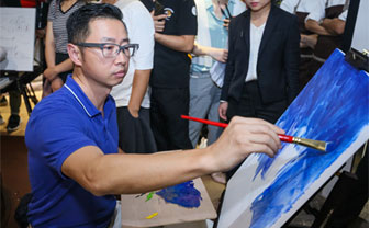 活動還特別設置了油畫創作環節,讓設計師們在繁忙的工作之余獲得身心的愉悅。李鷹先生、伊瓦諾先生和藝術家CAMILO CADENA先生、郁一一女士藝術家圍坐在圓形壁爐上認真創作,仿佛置身于戶外大自然中,獲得了靈感與創意的來源。